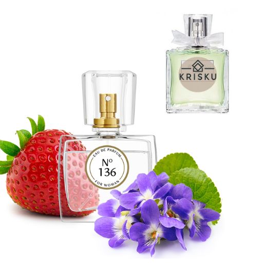 - Vidurinės natos: našlaitė, rožinis jazminas, braškių sorbetas, karamelizuoti kukurūzai
